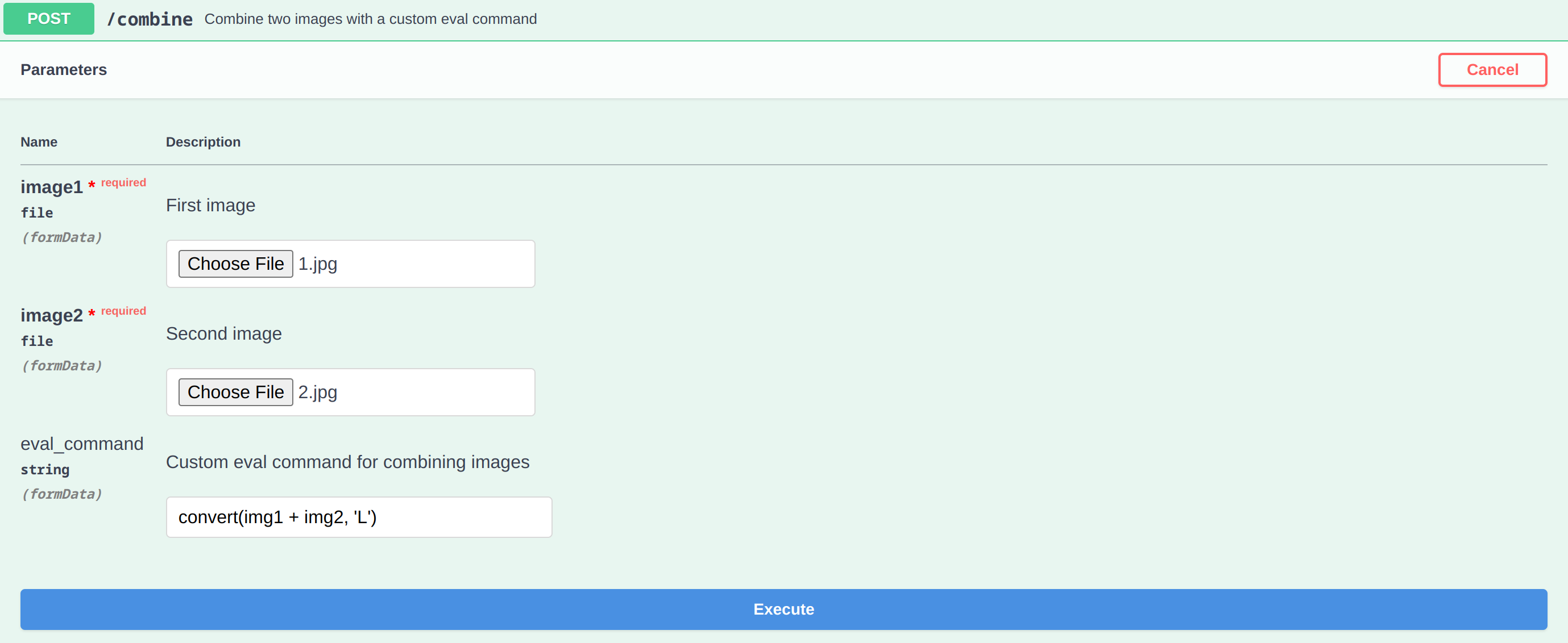 parameter for custom operations. Let’s test it by attempting to combine two images: