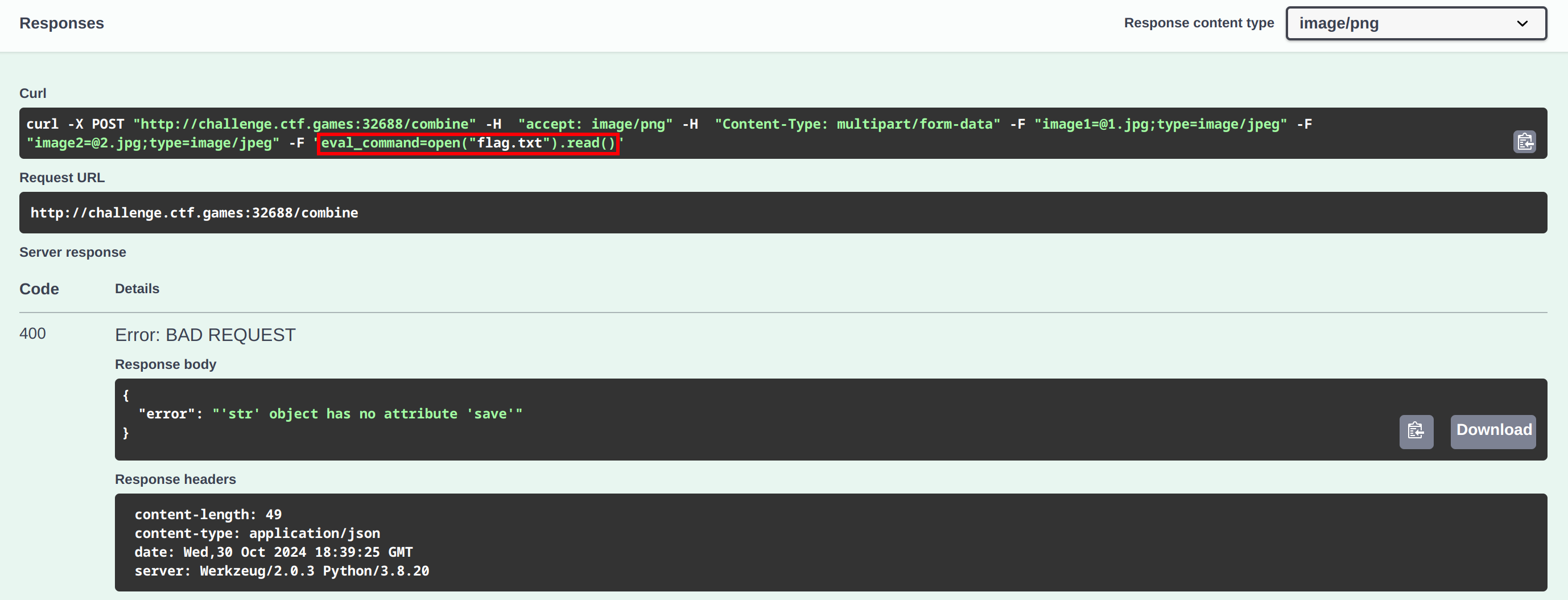 It appears that the server expects an image output with a .save()